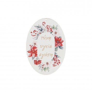 Οβάλ γκι κόκκινο ευχές 10cm