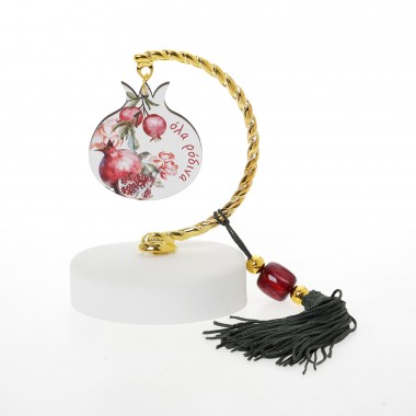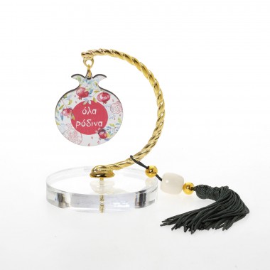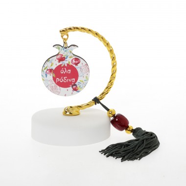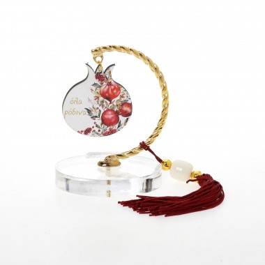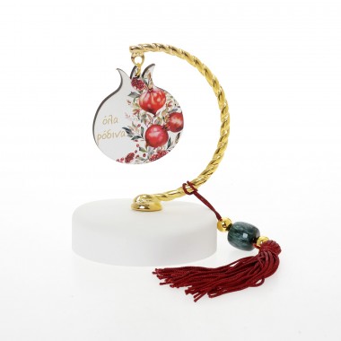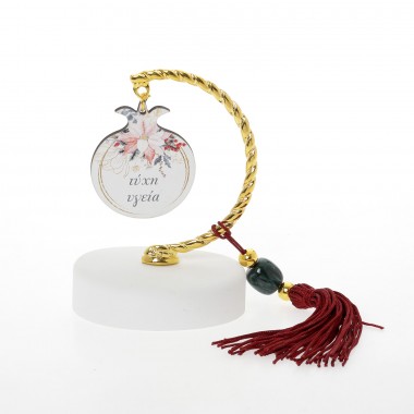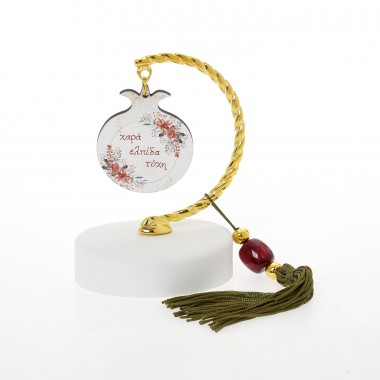 out of 5 1 Ξύλινα Επιτραπέζια Γούρια, Χριστουγεννιάτικα Ορθογώνιο οβάλ γκι ευχές / ρόδια ευχές / ροζ λουλούδια ευχές (15cm)