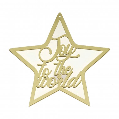 out of 5 1 Πλεξιγκλάς Καθρέφτης Στολίδια, Χριστουγεννιάτικα Αστέρι joy to the world λευκό χρυσό (15cm)