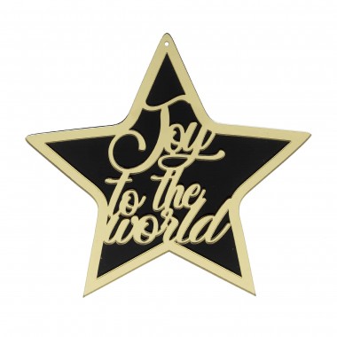 out of 5 1 Πλεξιγκλάς Καθρέφτης Στολίδια, Χριστουγεννιάτικα Αστέρι joy to the world μαύρο χρυσό (15cm)