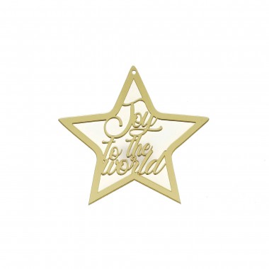 out of 5 1 Πλεξιγκλάς Καθρέφτης Στολίδια, Χριστουγεννιάτικα Αστέρι joy to the world λευκό χρυσό (10cm)
