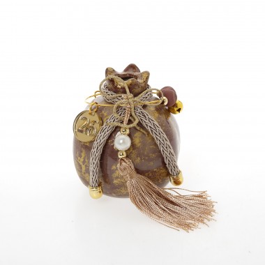 out of 5 1 Γούρια Κεραμικά Πορσελάνη, Χριστουγεννιάτικα Ρόδι σάπιο μήλο πορσελάνη πατίνα χρυσή στολισμένο 7,5cm