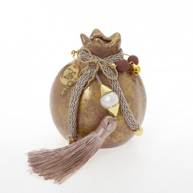 out of 5 1 Γούρια Κεραμικά Πορσελάνη, Χριστουγεννιάτικα Ρόδι σάπιο μήλο πορσελάνη πατίνα χρυσή στολισμένο ρόδι ευχές 7,5cm