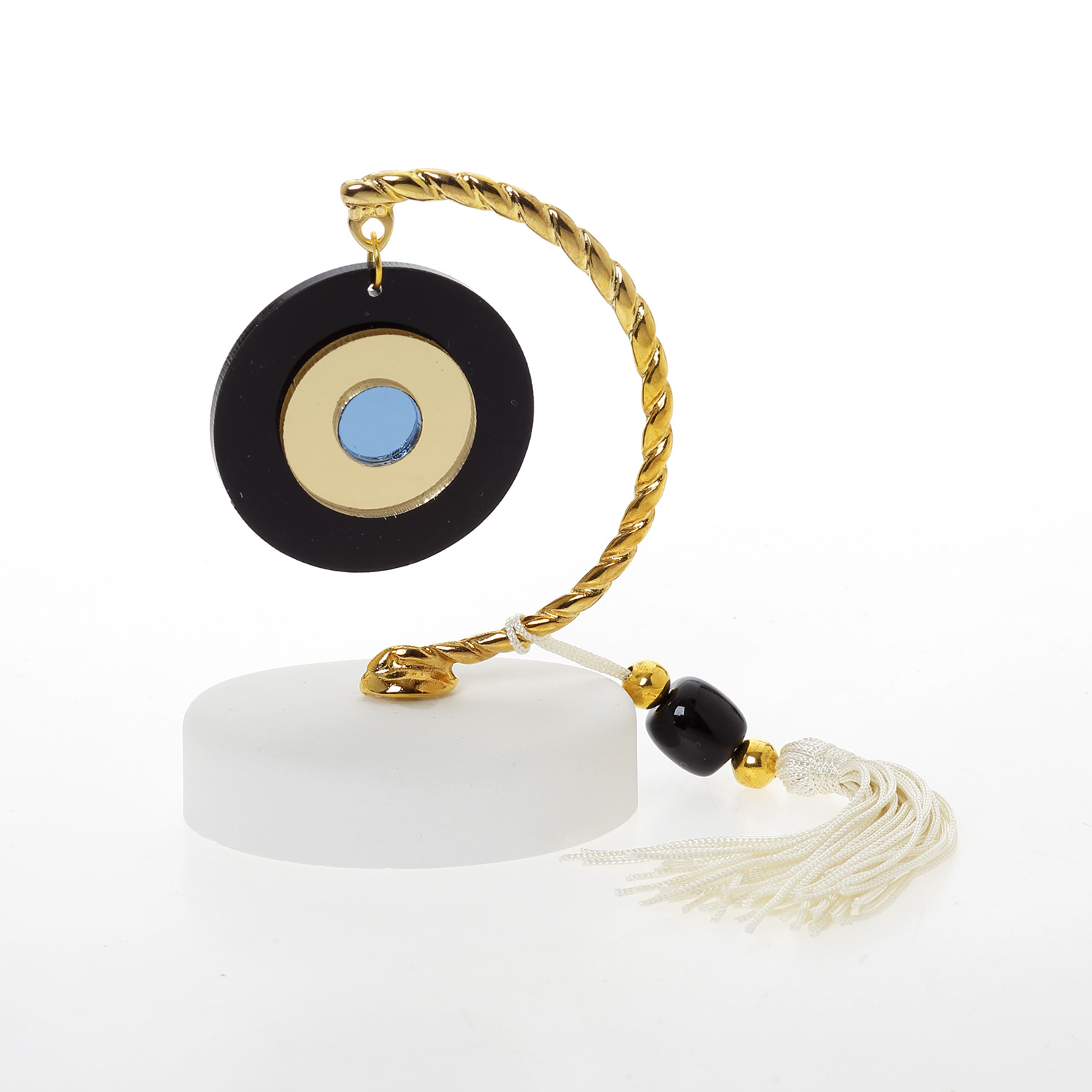 Βραχάκι οβάλ γύψος ματάκι μαύρο χρυσό σιέλ με εκρού φούντα