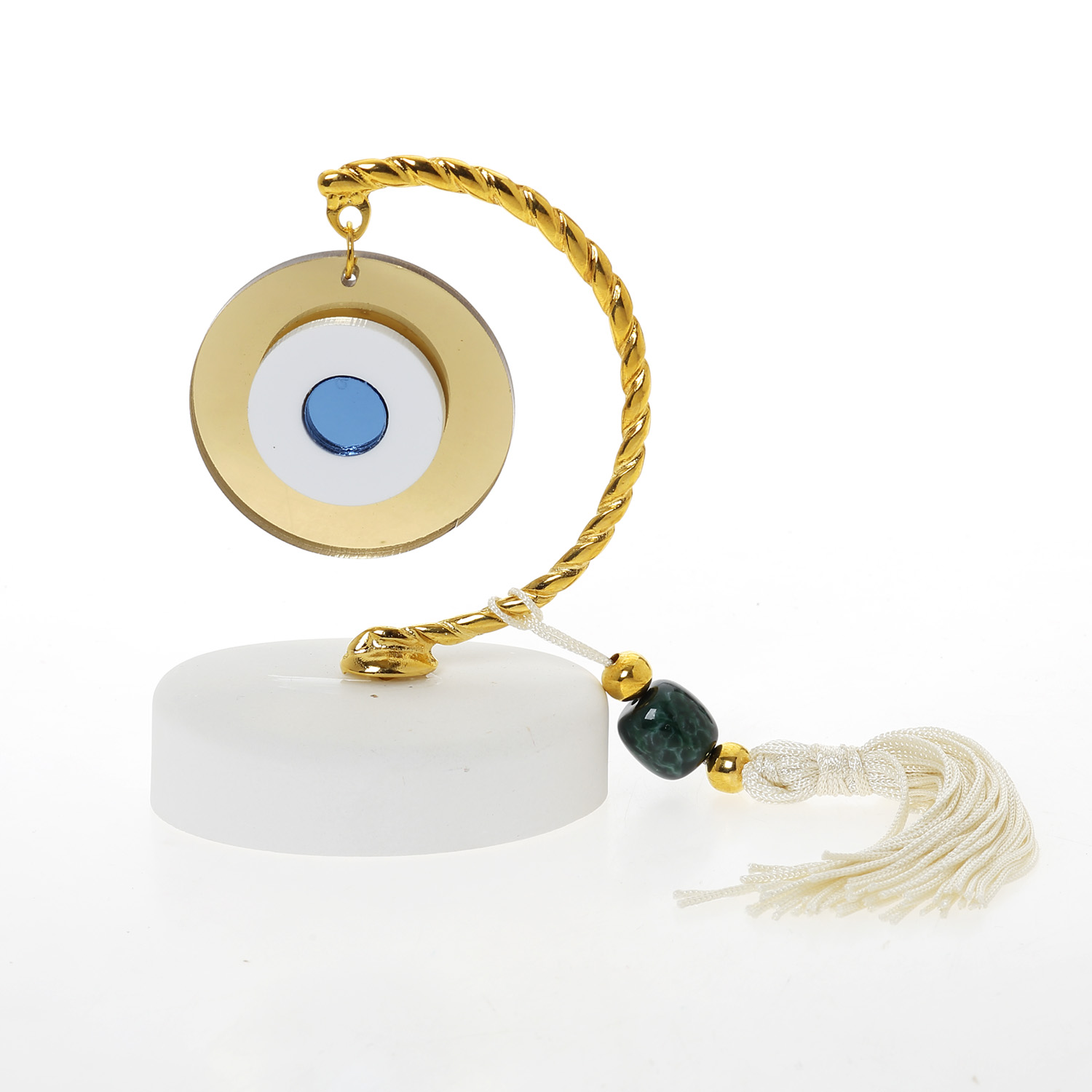 Βραχάκι οβάλ γύψος ματάκι χρυσό λευκό σιέλ με εκρού φούντα