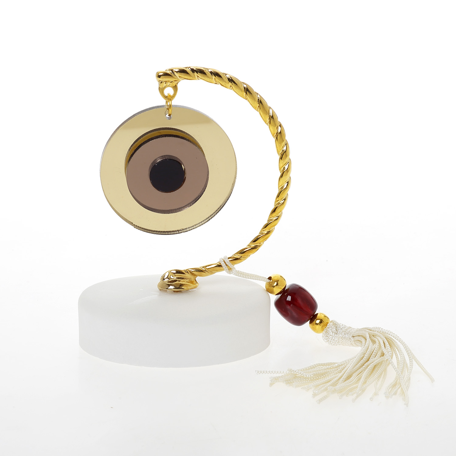 Βραχάκι οβάλ γύψος ματάκι χρυσό μπρονζέ μαύρο με εκρού φούντα