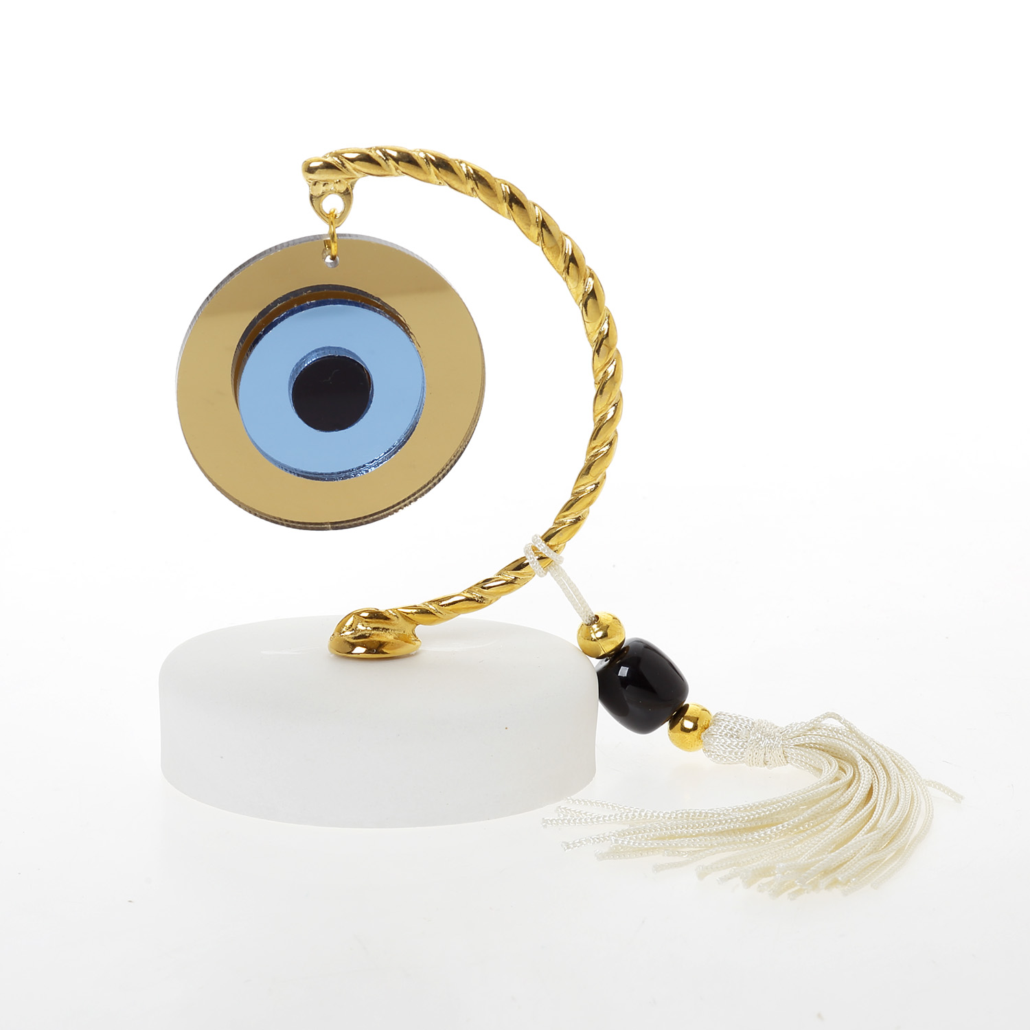 Βραχάκι οβάλ γύψος ματάκι χρυσό σιέλ μαύρο με εκρού φούντα