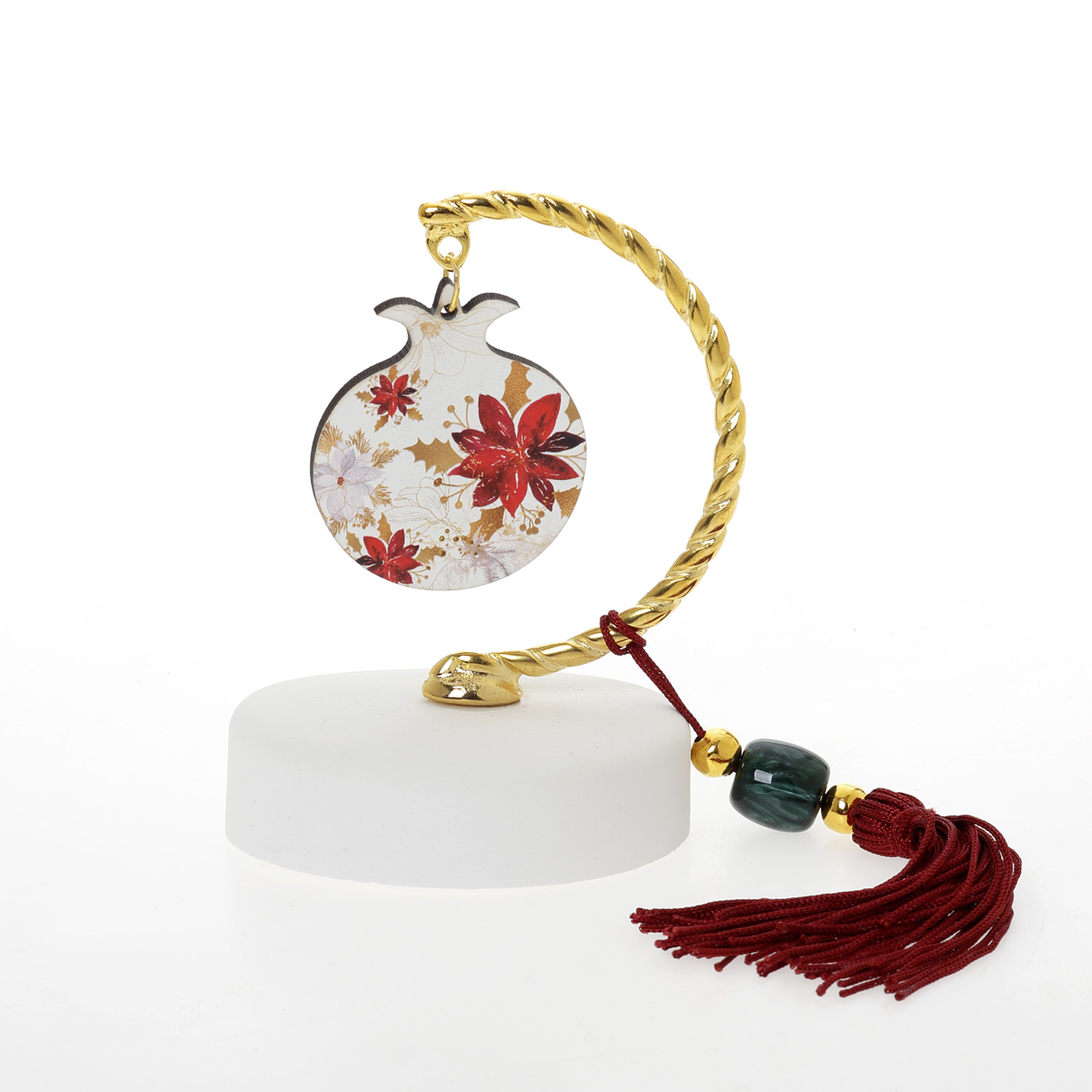 Βραχάκι οβάλ γύψος ρόδι κόκκινα λευκά λουλούδια ξύλινο τυπωμένο με κόκκινη φούντα