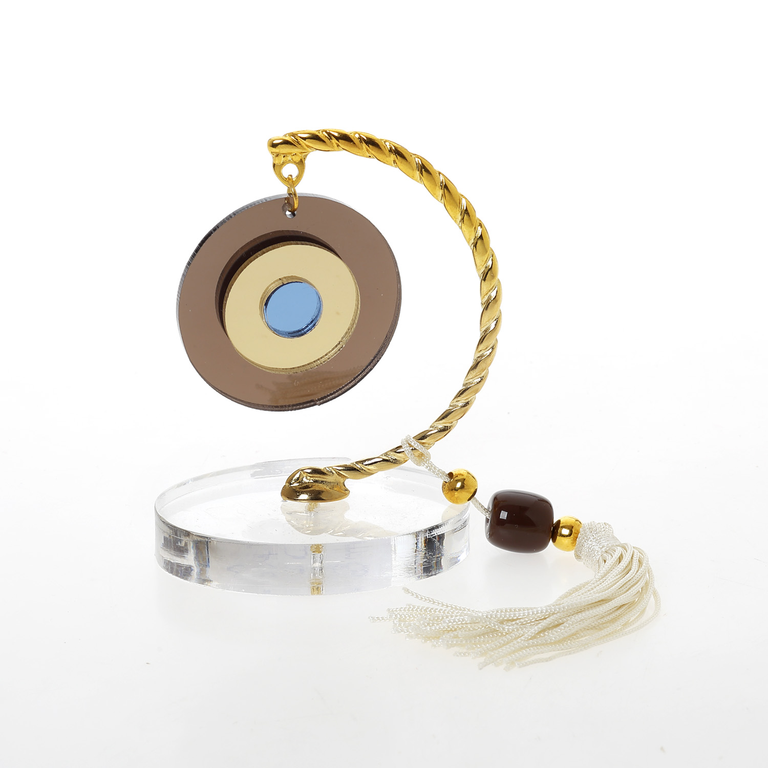 Βραχάκι οβάλ plexi ματάκι μπρονζέ χρυσό σιέλ με εκρού φούντα