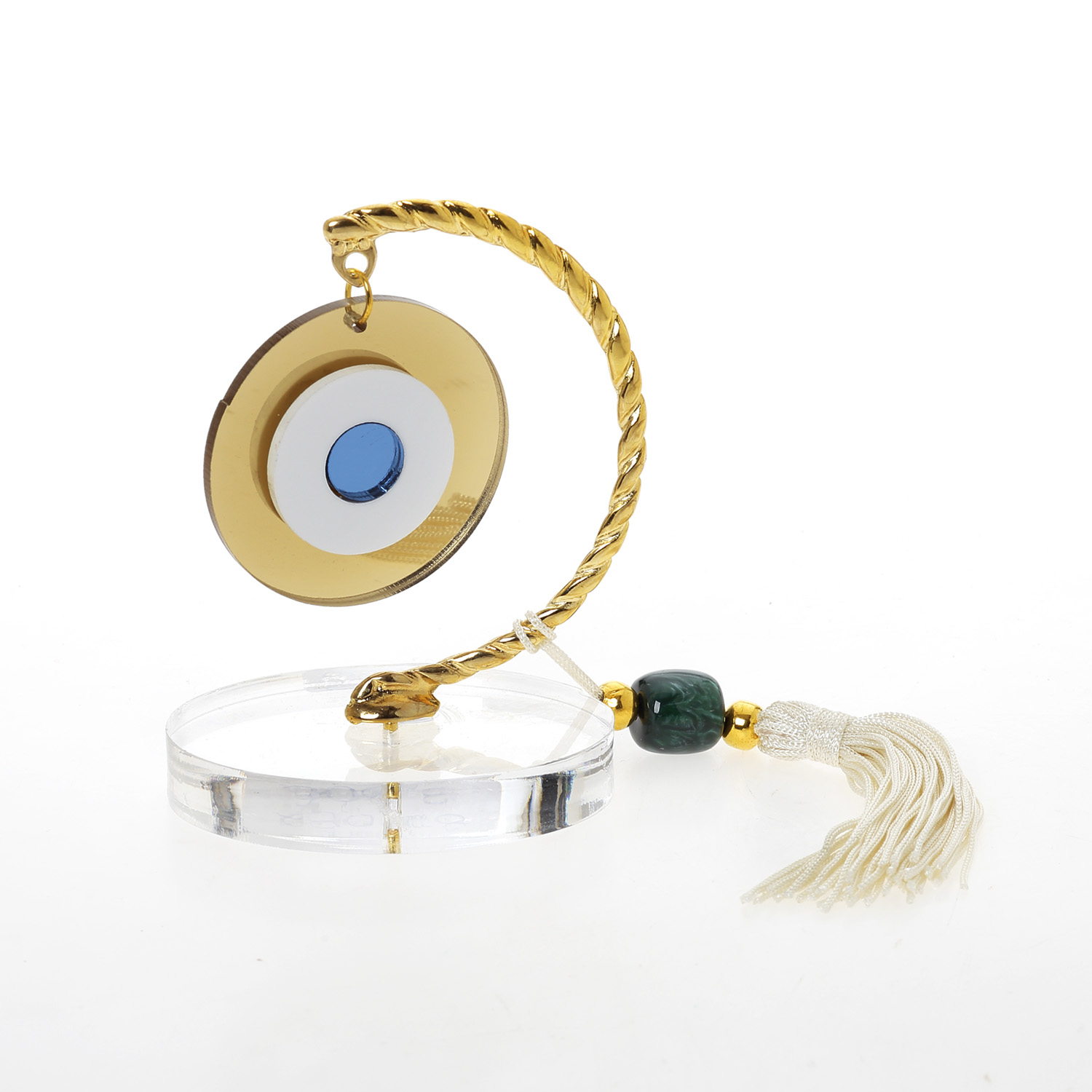 Βραχάκι οβάλ plexi ματάκι χρυσό λευκό σιέλ με εκρού φούντα