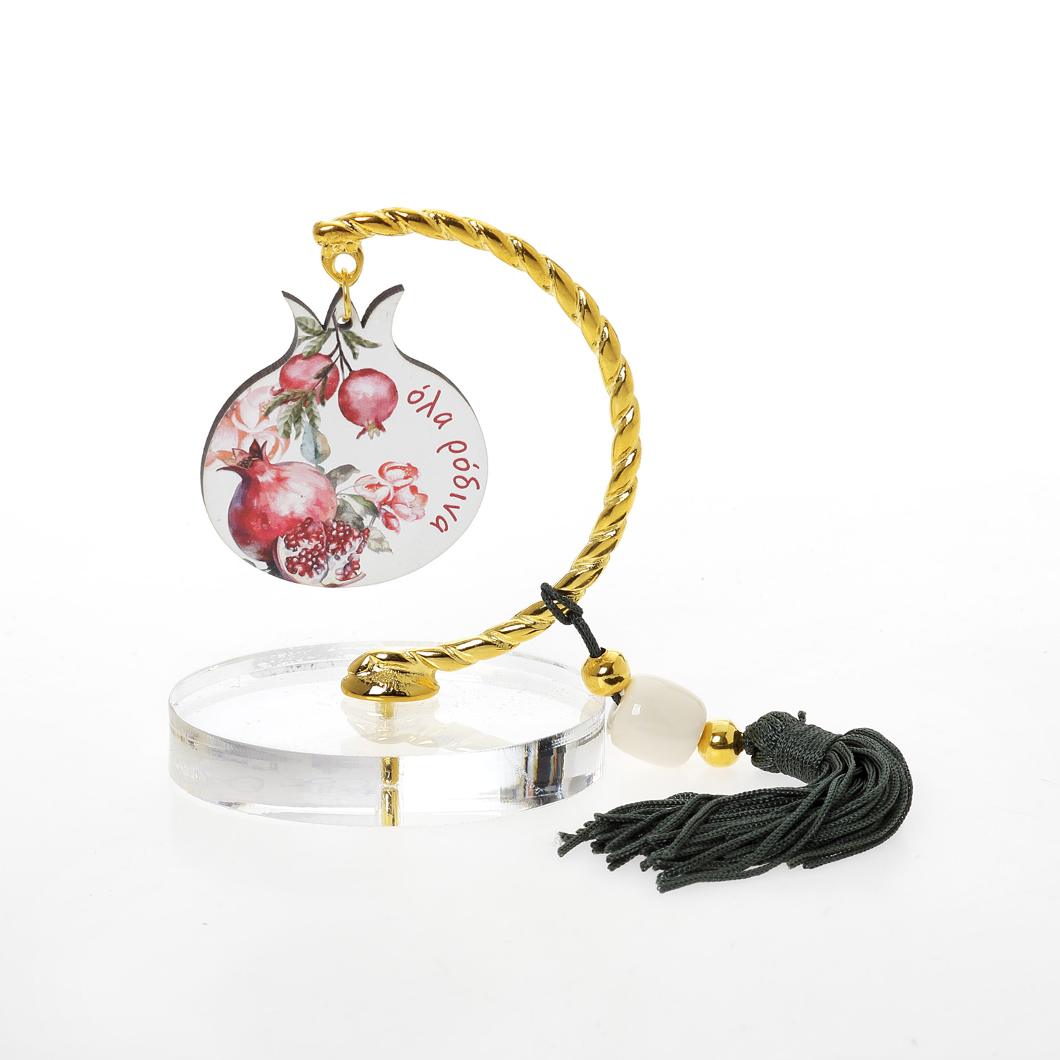 Βραχάκι οβάλ plexi ρόδι ρόδια αριστερά όλα ρόδινα ξύλινο τυπωμένο με γκρι φούντα
