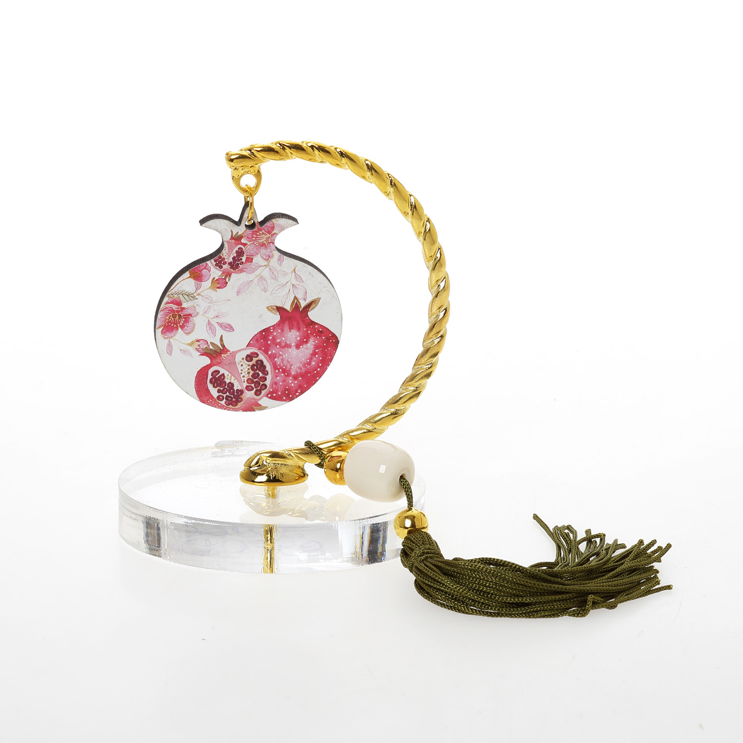 Βραχάκι οβάλ plexi ρόδι φούξια ρόδια ξύλινο τυπωμένο με λαδί φούντα
