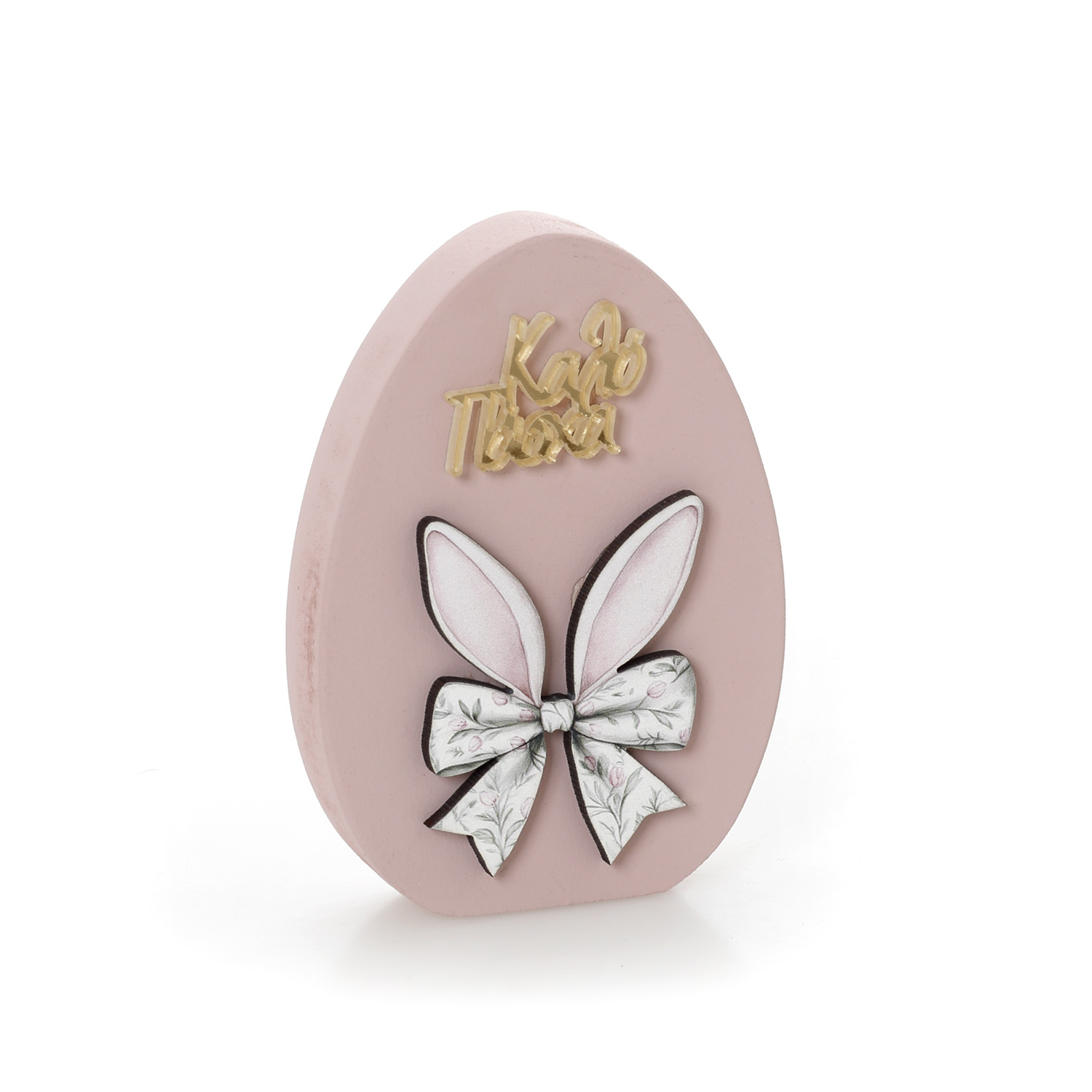 Επιτραπέζιο ξύλινο εκτυπωμένο διακοσμητικό Αυγό σάπιο μήλο αυτιά λαγού ροζ καλό Πάσχα