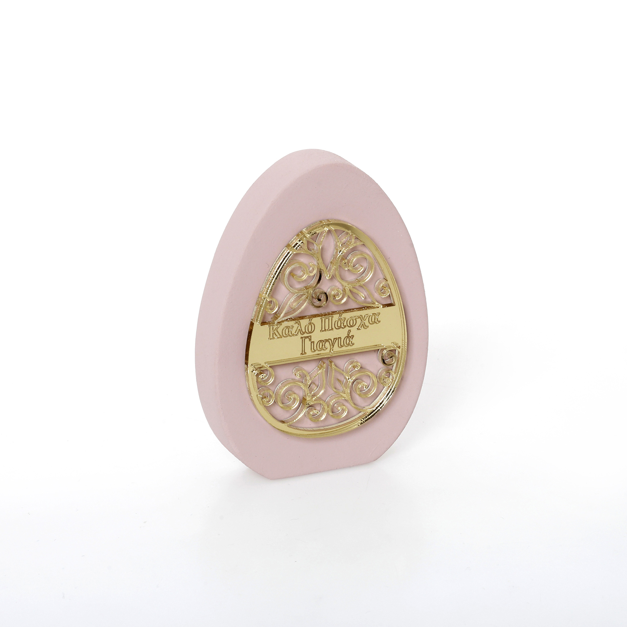 Επιτραπέζιο ξύλινο plexiglass διακοσμητικό Αυγό σάπιο μήλο χρυσό Καλό Πάσχα γιαγιά