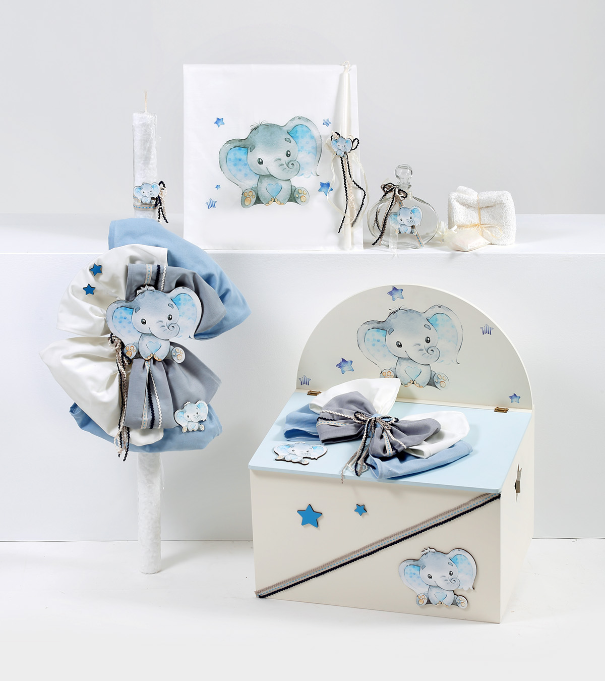 Πακέτο βάπτισης αγόρι με θέμα Ελεφαντάκι καρδιά σιέλ