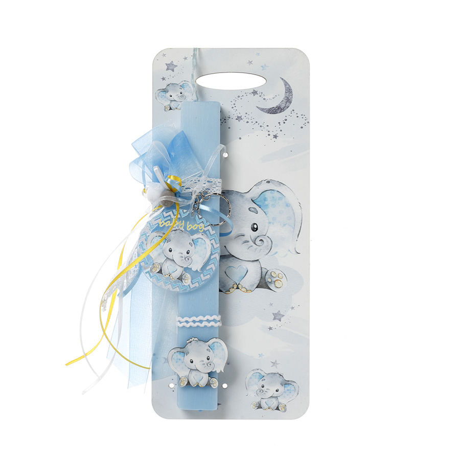 Πασχαλινή λαμπάδα με πλάτη Ελεφαντάκι σιέλ