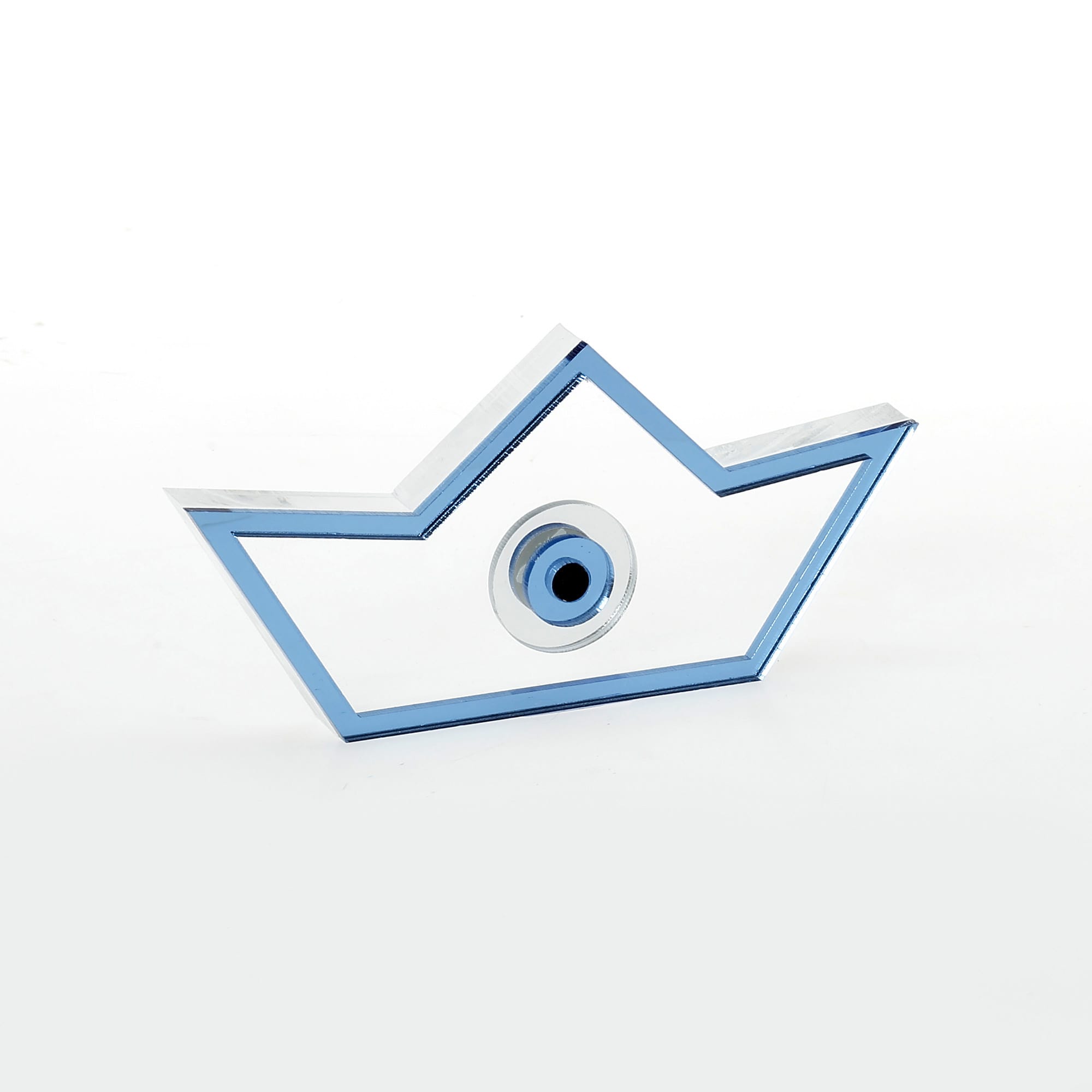 Καράβι σιέλ περίγραμμα ματάκι ασημί σιέλ (10cm)