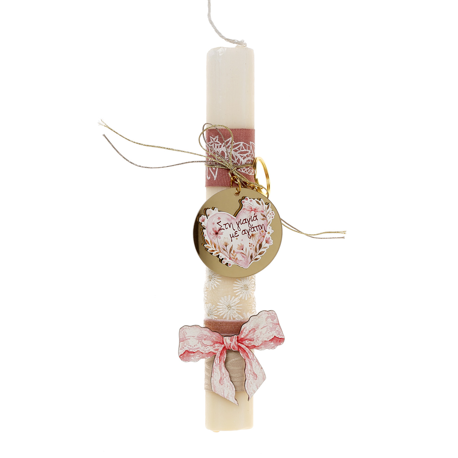 Στολισμένη πασχαλινή λαμπάδα Καρδιά γιαγιά φιόγκος