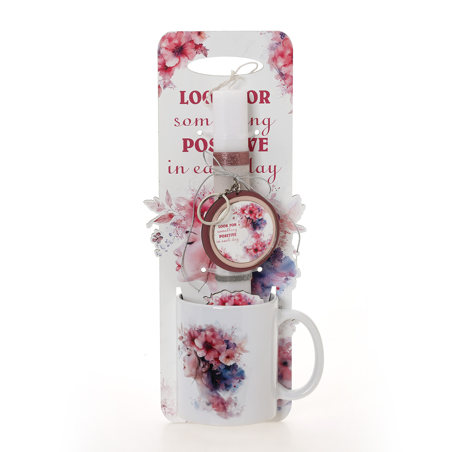 Πασχαλινή λαμπάδα με πλάτη και κούπα Κοπέλα λουλούδια ροζ