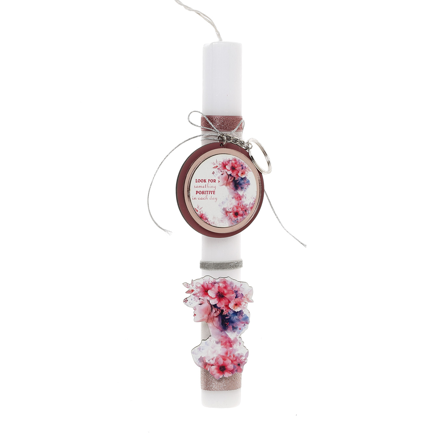 Στολισμένη πασχαλινή λαμπάδα Κοπέλα λουλούδια ροζ