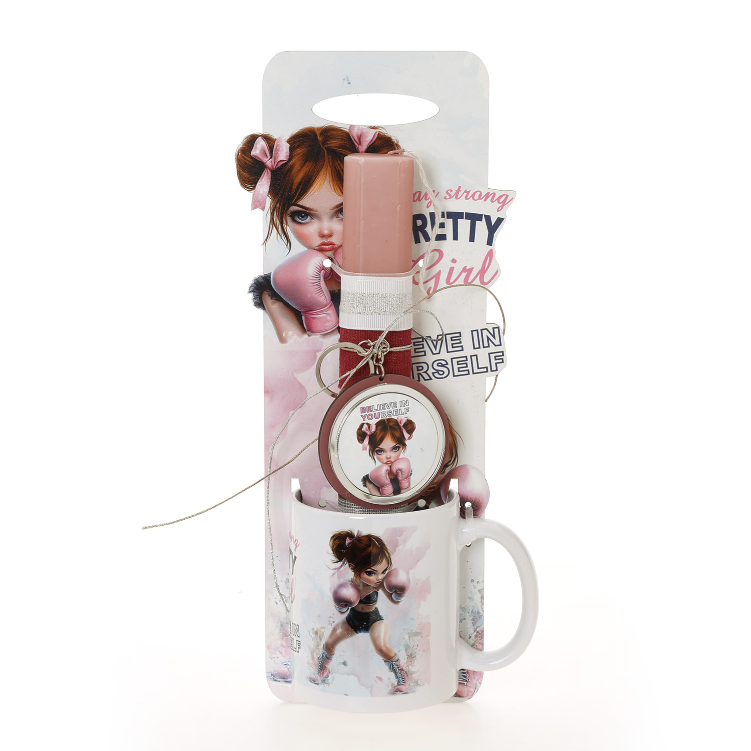 Πασχαλινή λαμπάδα με πλάτη και κούπα Κορίτσι μποξ