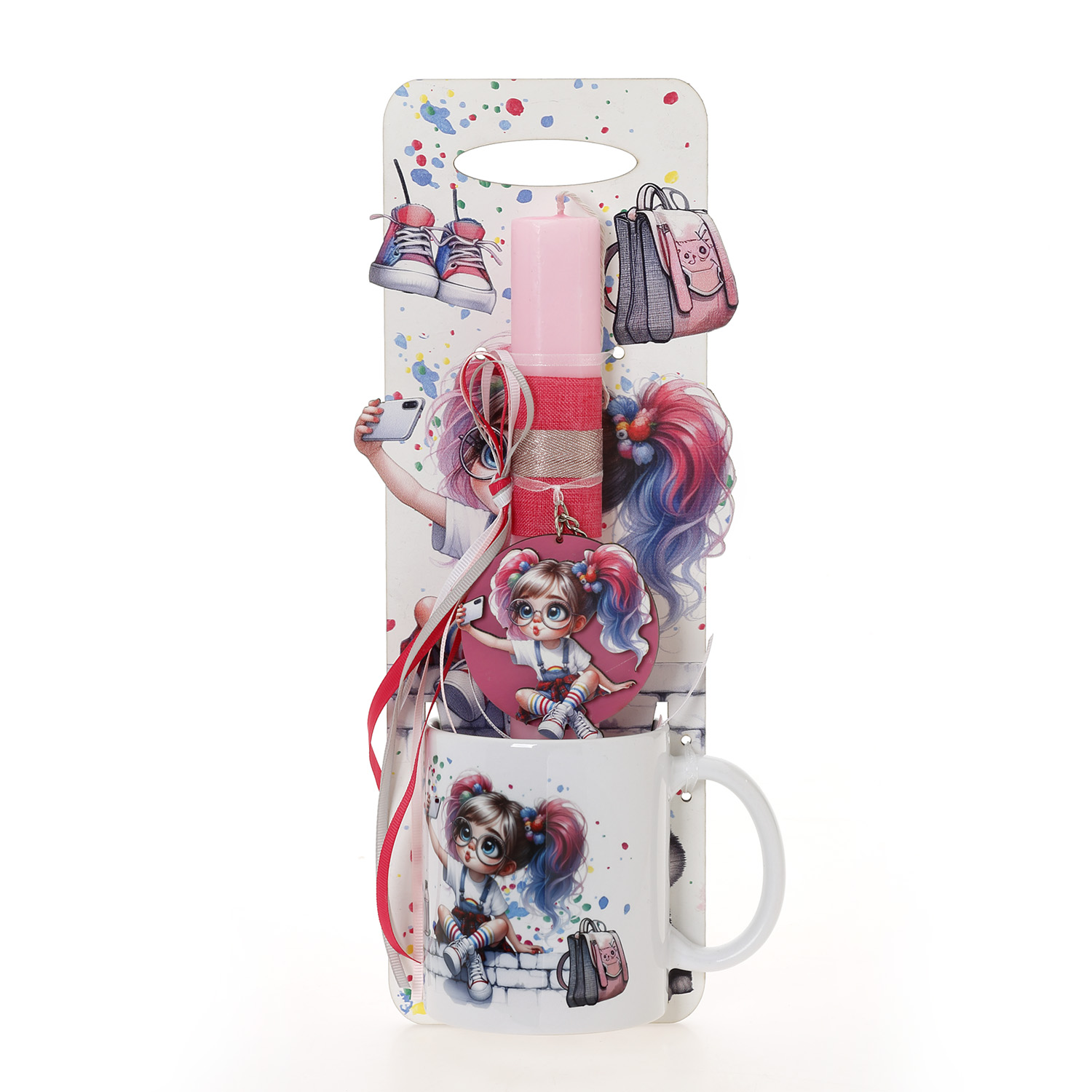 Πασχαλινή λαμπάδα με πλάτη και κούπα Κορίτσι σέλφι