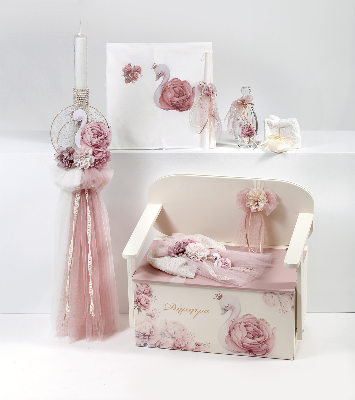 Πακέτο βάπτισης κορίτσι με θέμα Κύκνος παιώνια