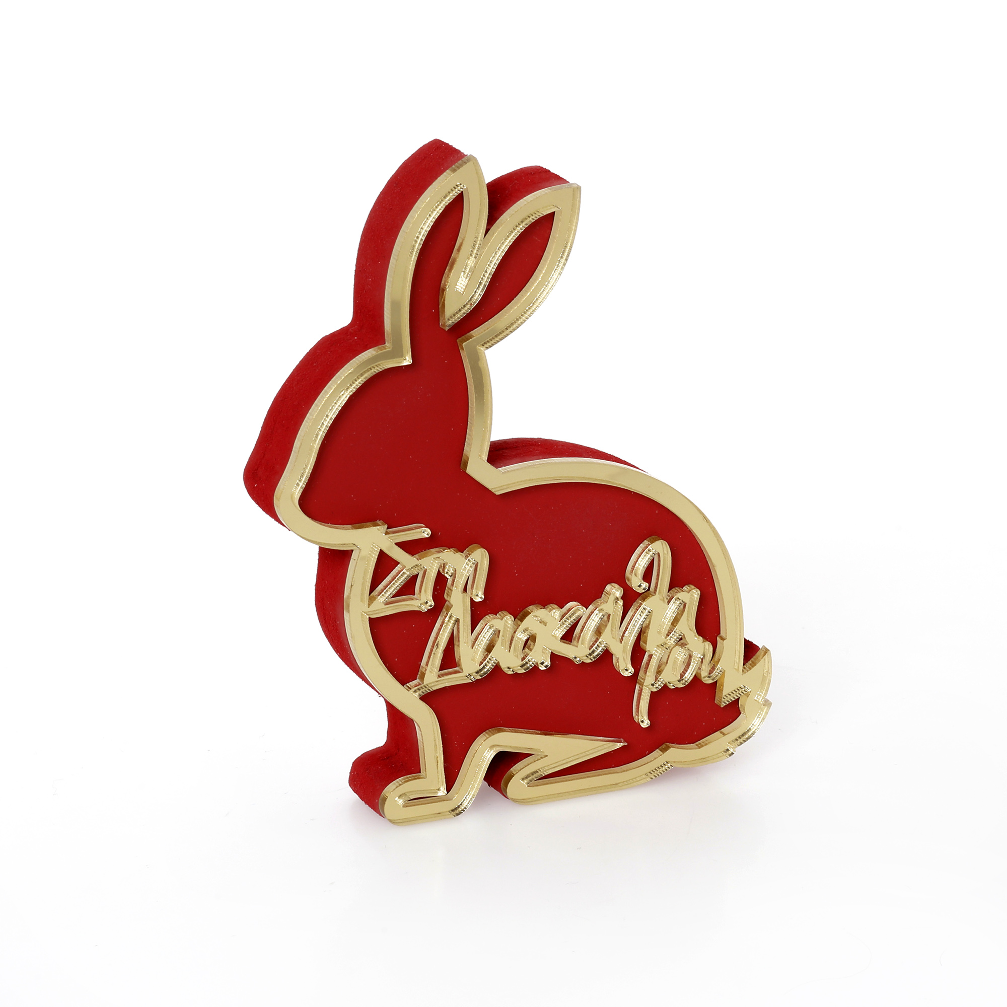 Επιτραπέζιο ξύλινο plexiglass διακοσμητικό Λαγός καθιστός κόκκινος στη δασκάλα μου