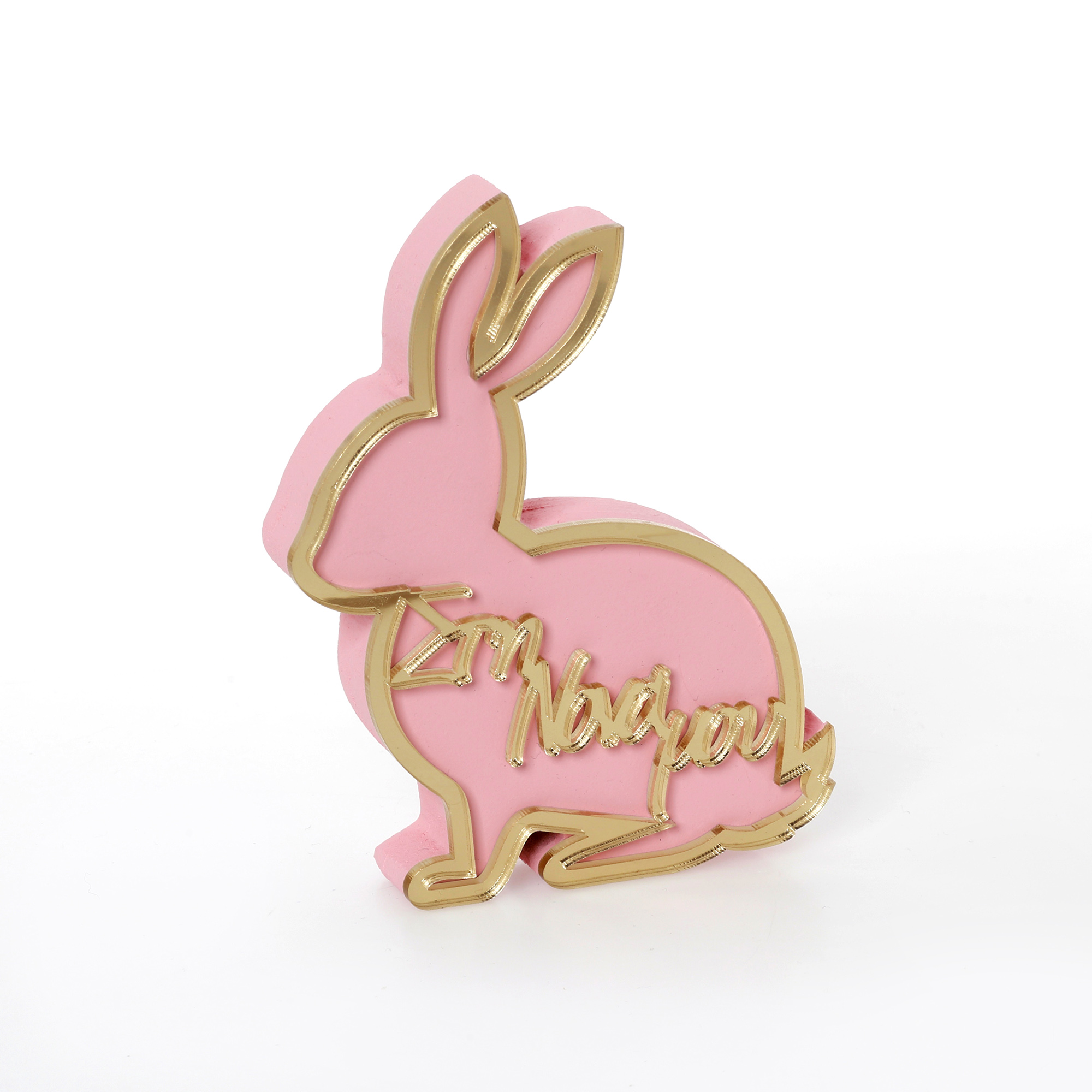 Επιτραπέζιο ξύλινο plexiglass διακοσμητικό Λαγός καθιστός τριανταφυλλί στη νονά μου