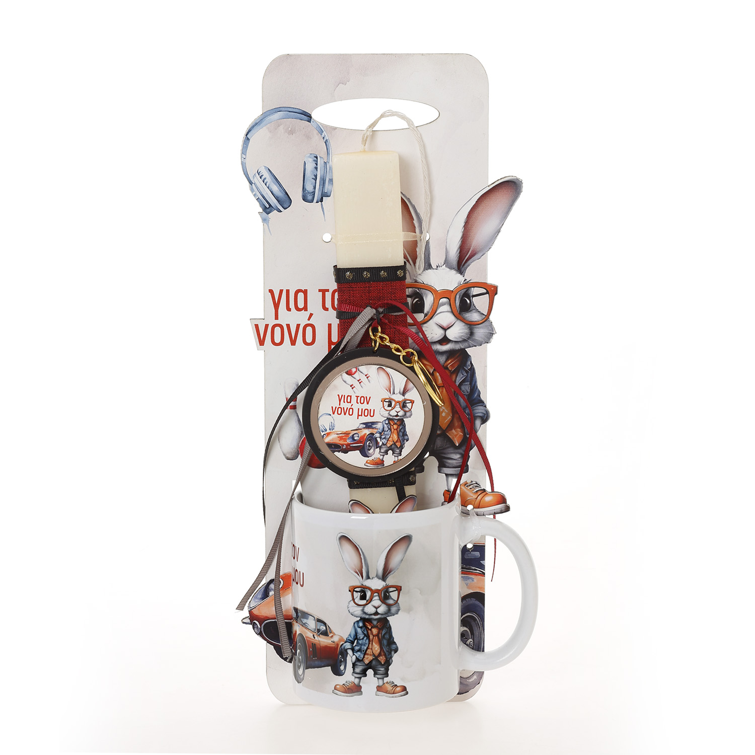 Πασχαλινή λαμπάδα με πλάτη και κούπα Λαγός νονός