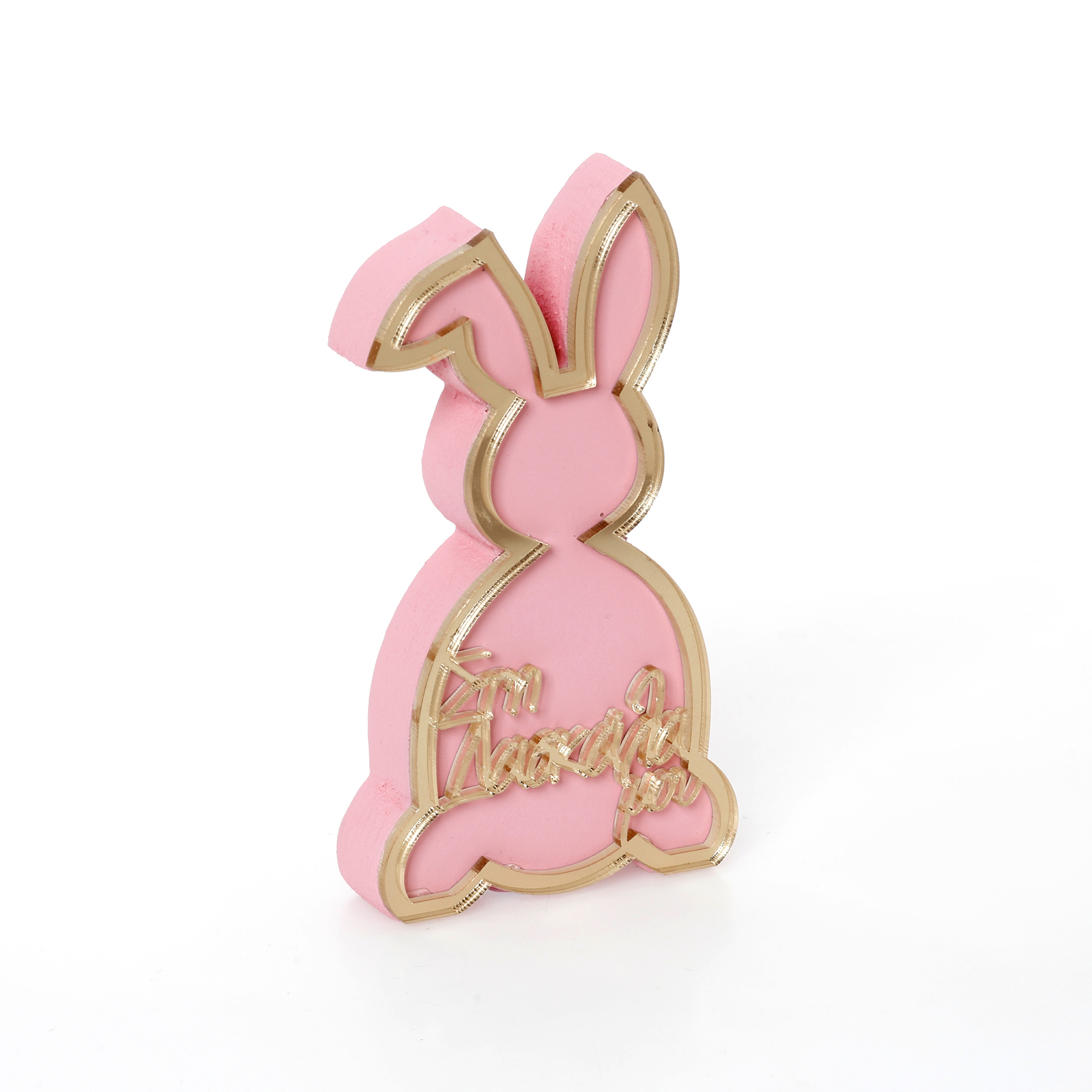 Επιτραπέζιο ξύλινο plexiglass διακοσμητικό Λαγός όρθιος τριανταφυλλί στη δασκάλα μου