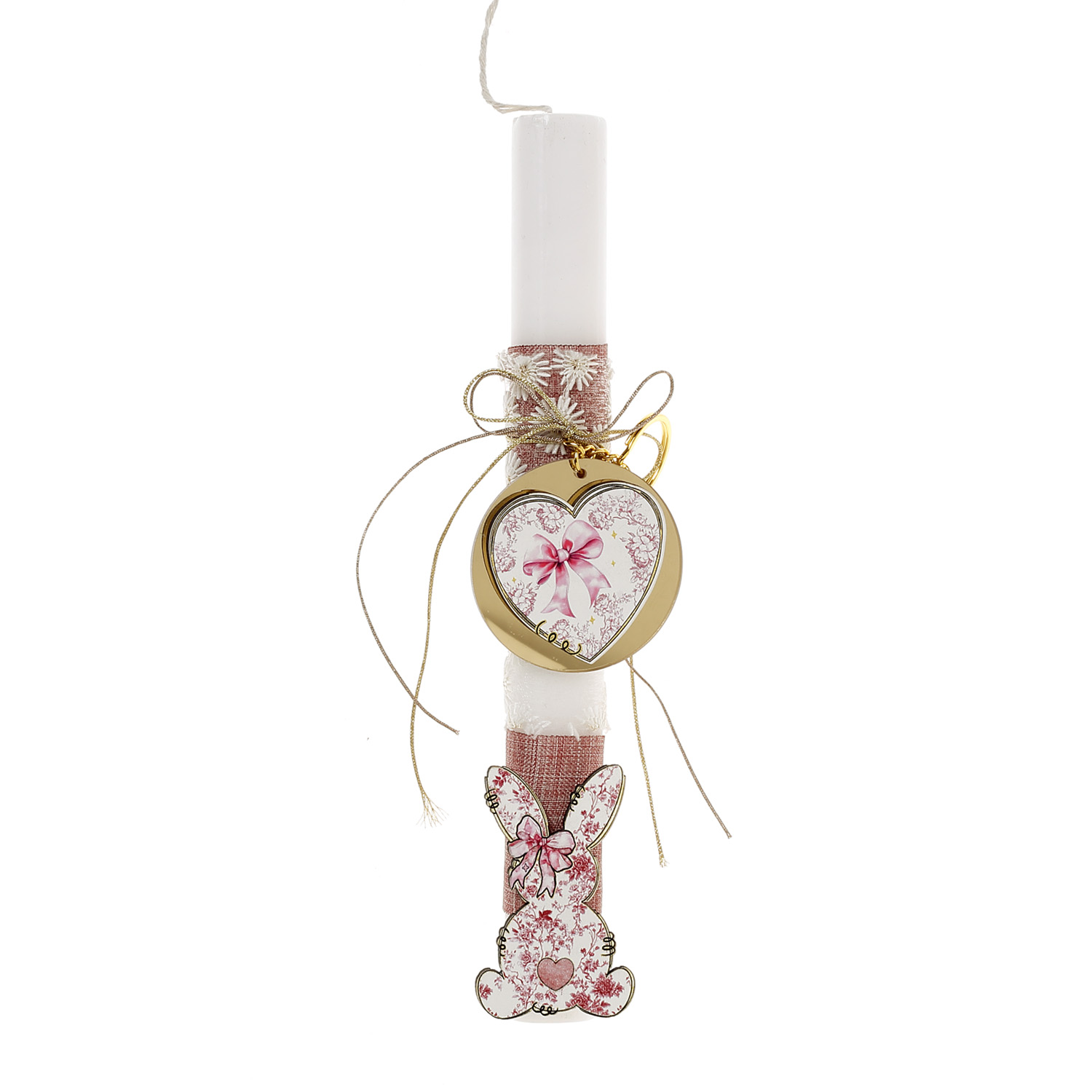 Στολισμένη πασχαλινή λαμπάδα Λαγουδάκι ροζ λουλούδια κοπτικό