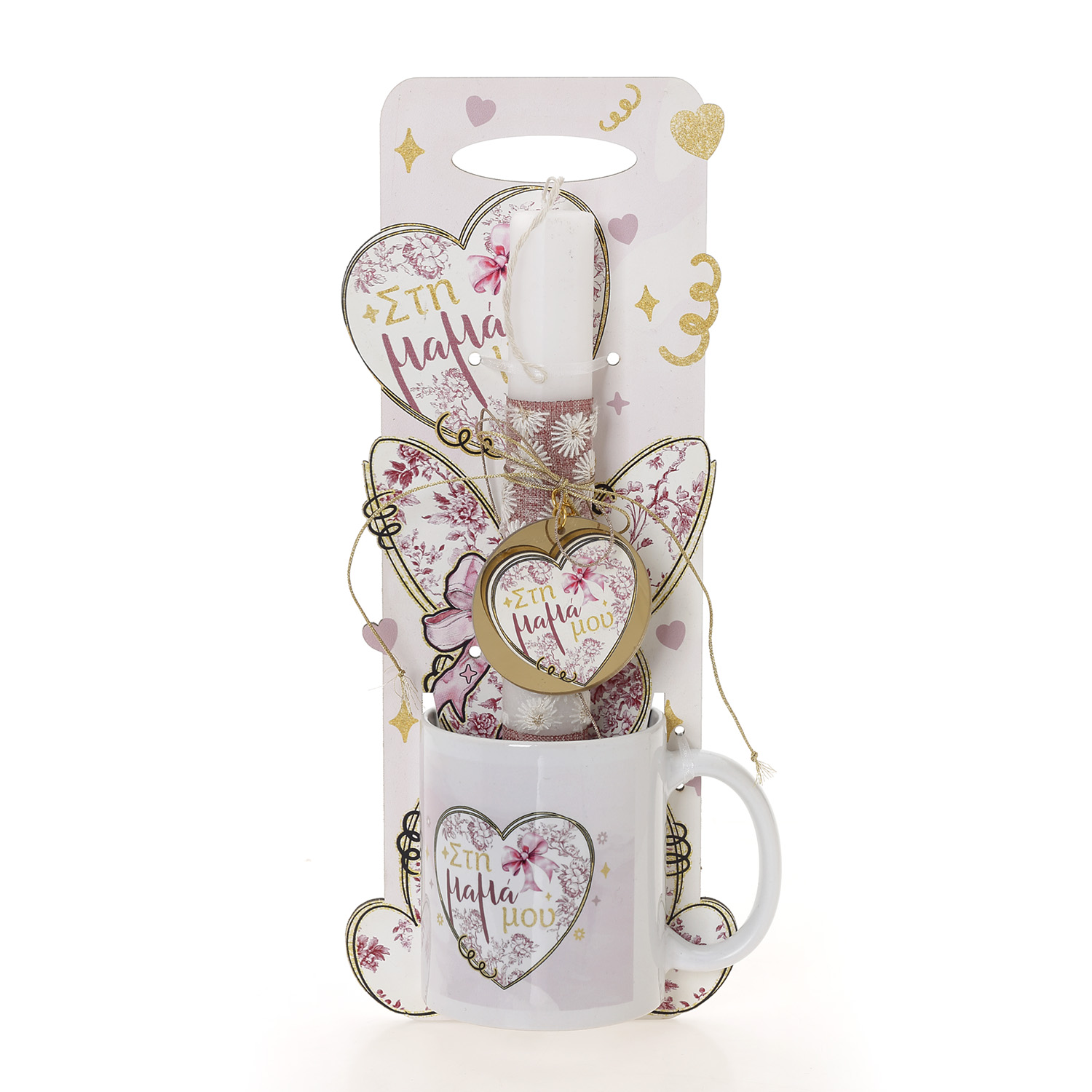 Πασχαλινή λαμπάδα με πλάτη και κούπα Λαγουδίνα ροζ λουλούδια ¨για τη μαμά¨
