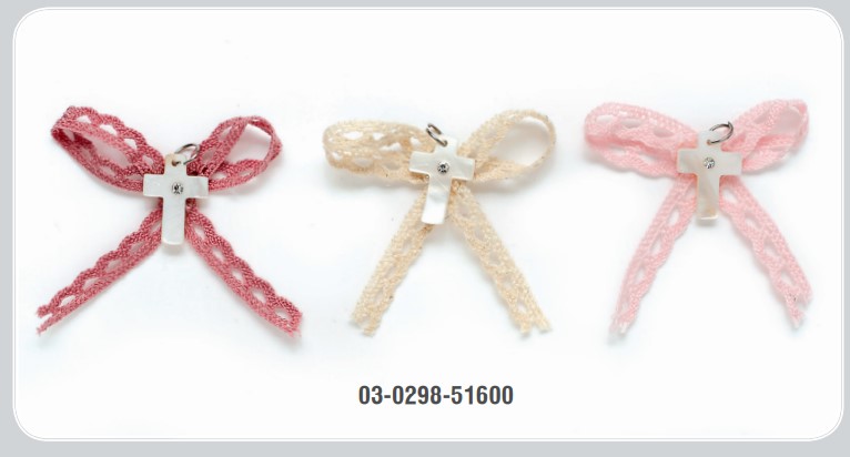 Μαρτυρικό Βάπτισης έτοιμο 03-0298 με δαντέλα σε χρώματα εκρού, ροζ και σάπιο μήλο,