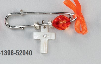 Μαρτυρικό Βάπτισης παραμάνα έτοιμο 03-1398 με πορτοκαλί διακοσμητική πέτρα, πορτοκαλί κορδέλα φιόγκο