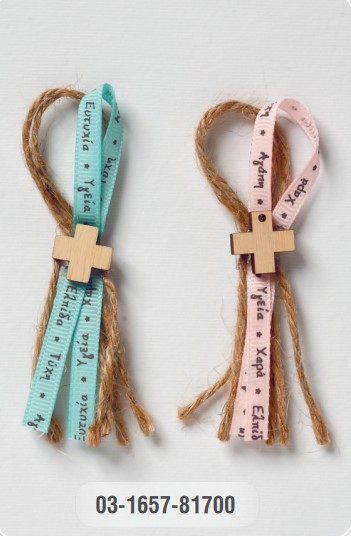 Μαρτυρικό Βάπτισης έτοιμο 03-1657 με καφέ σχοινάκι, κορδέλα (υγεία, ευτυχία, τύχη) σε χρώματα ροζ και σιέλ