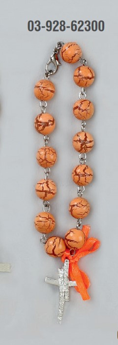 Μαρτυρικό Βάπτισης βραχιόλι έτοιμο 03-928 με πέτρες , πορτοκαλί κορδέλα φιόγκο
