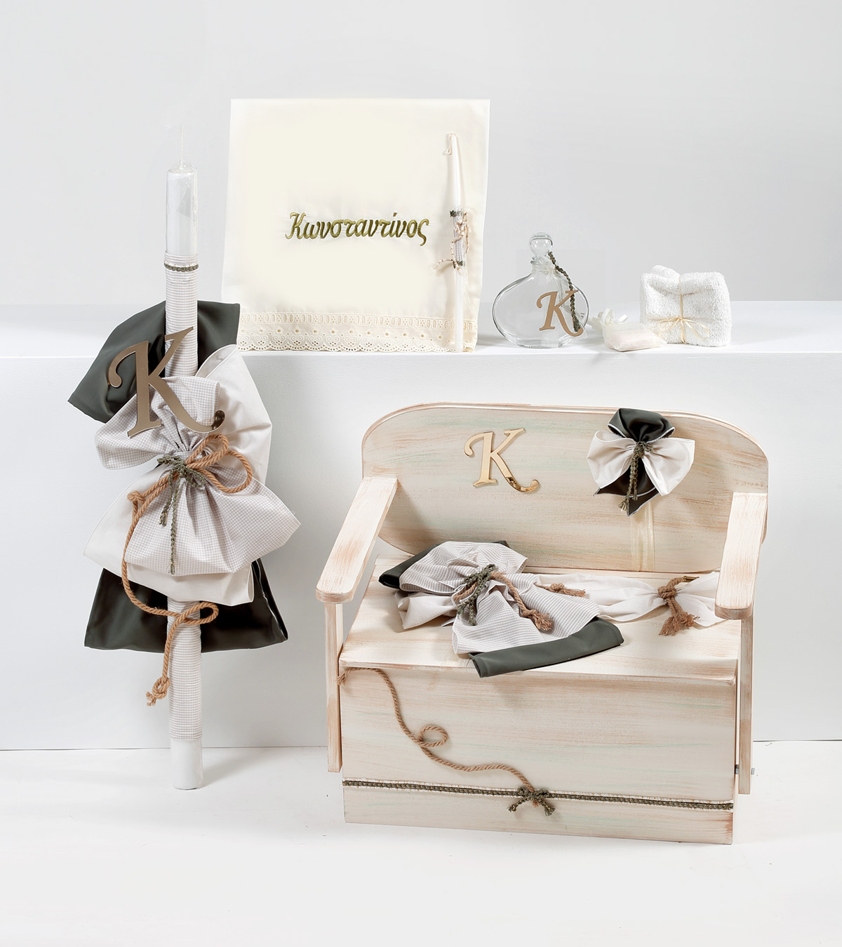 Πακέτο βάπτισης αγόρι με θέμα Μονόγραμμα φιόγκος