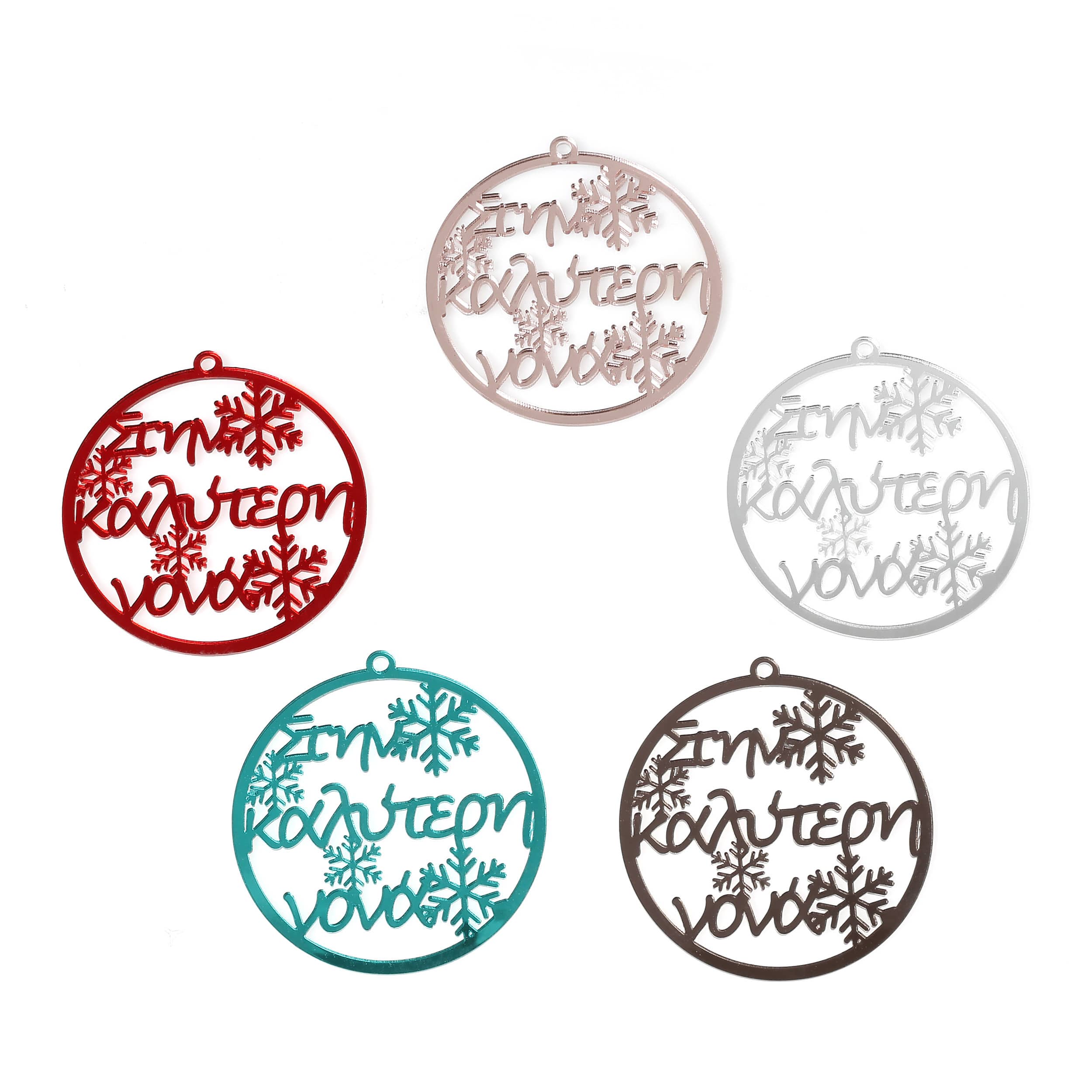 Χριστουγεννιάτικα στολίδια plexiglass καθρέφτης σε μεγάλη ποικίλια σχεδίων και σε διάφορα μεγέθη.