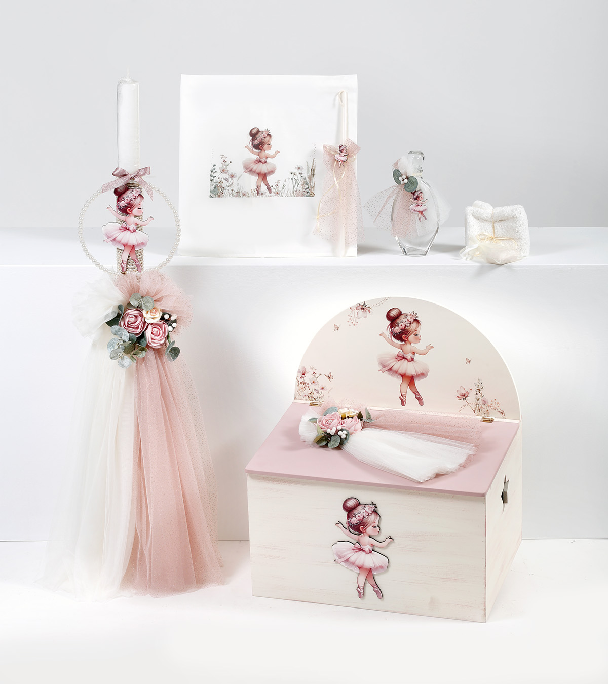 Πακέτο βάπτισης κορίτσι με θέμα Μπαλαρίνα όρθια λουλούδια
