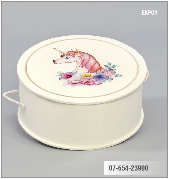Μπαούλο βάπτισης καπελιέρα μονόκερος με διακοσμητικά λουλούδια