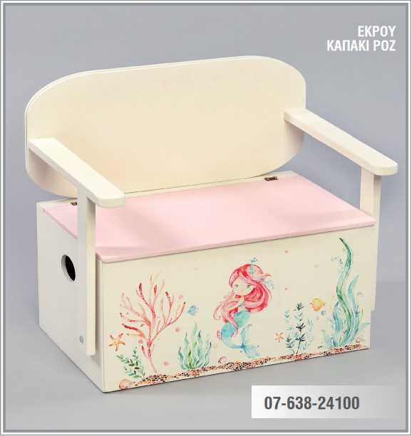 Μπαούλο παγκάκι γοργόνα στο βυθό σε εκρού χρώμα με καπάκι σε ροζ.