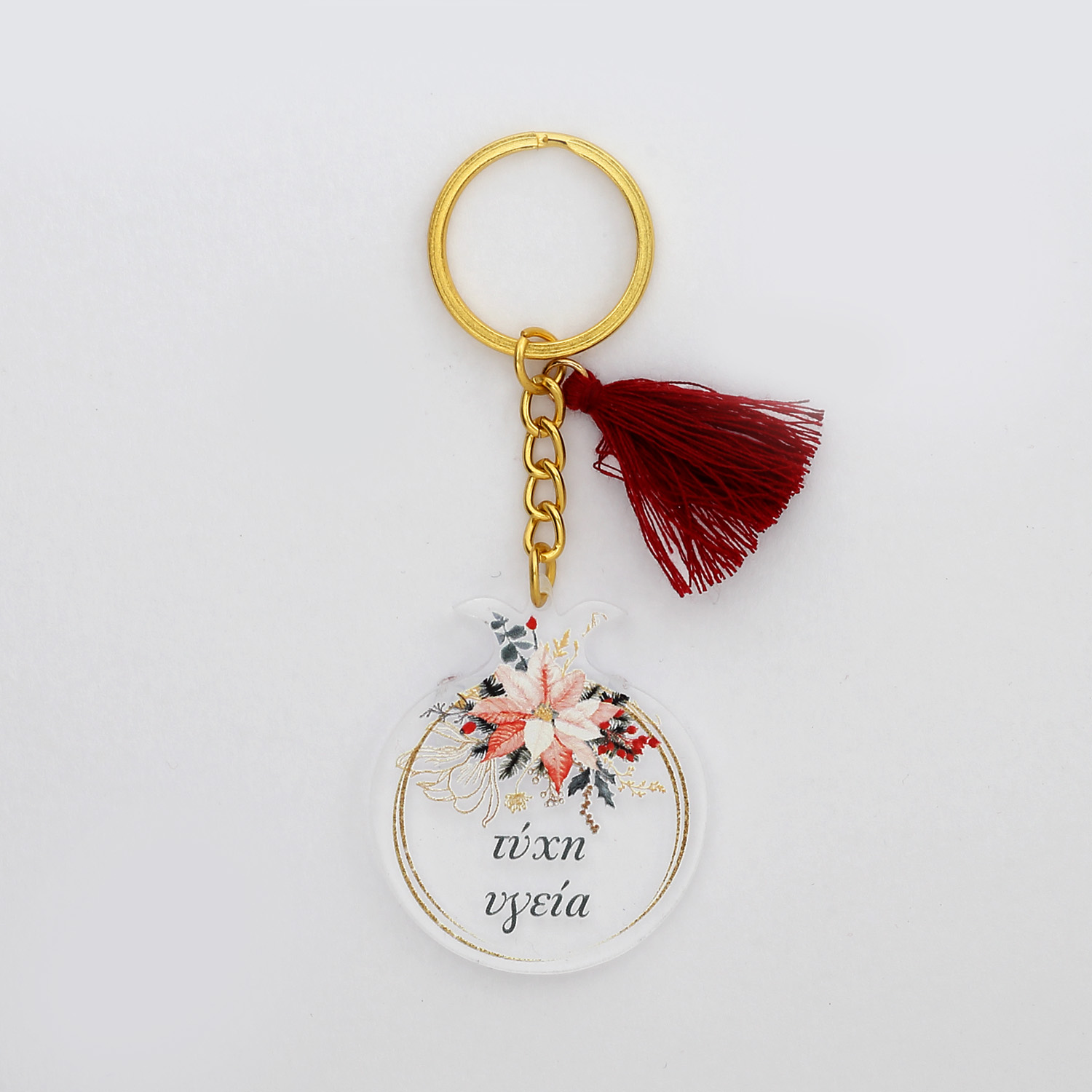 Χριστουγεννιάτικο Μπρελόκ ρόδι ροζ λουλούδια ευχές