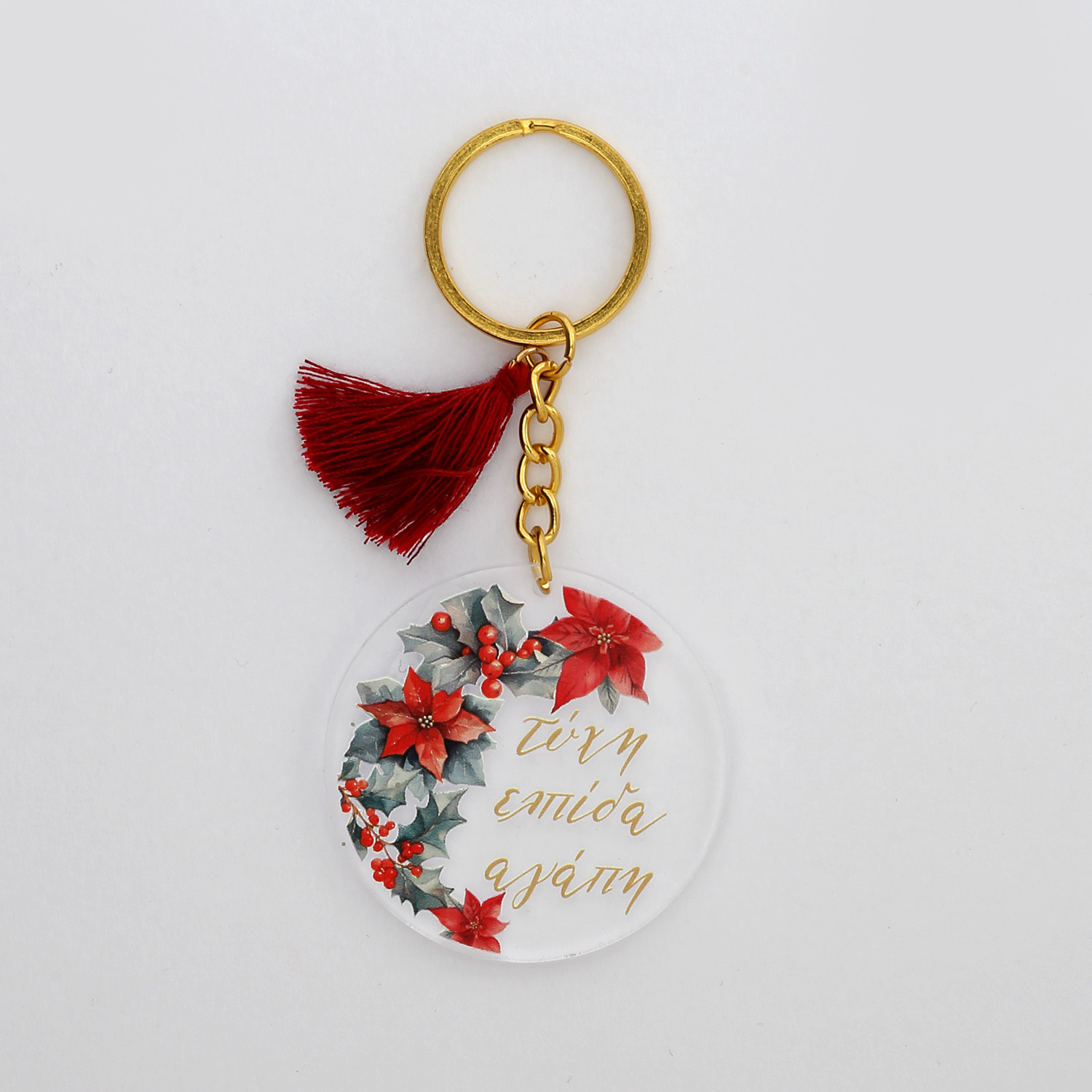 Χριστουγεννιάτικο Μπρελόκ στρογγυλό γκι ευχές