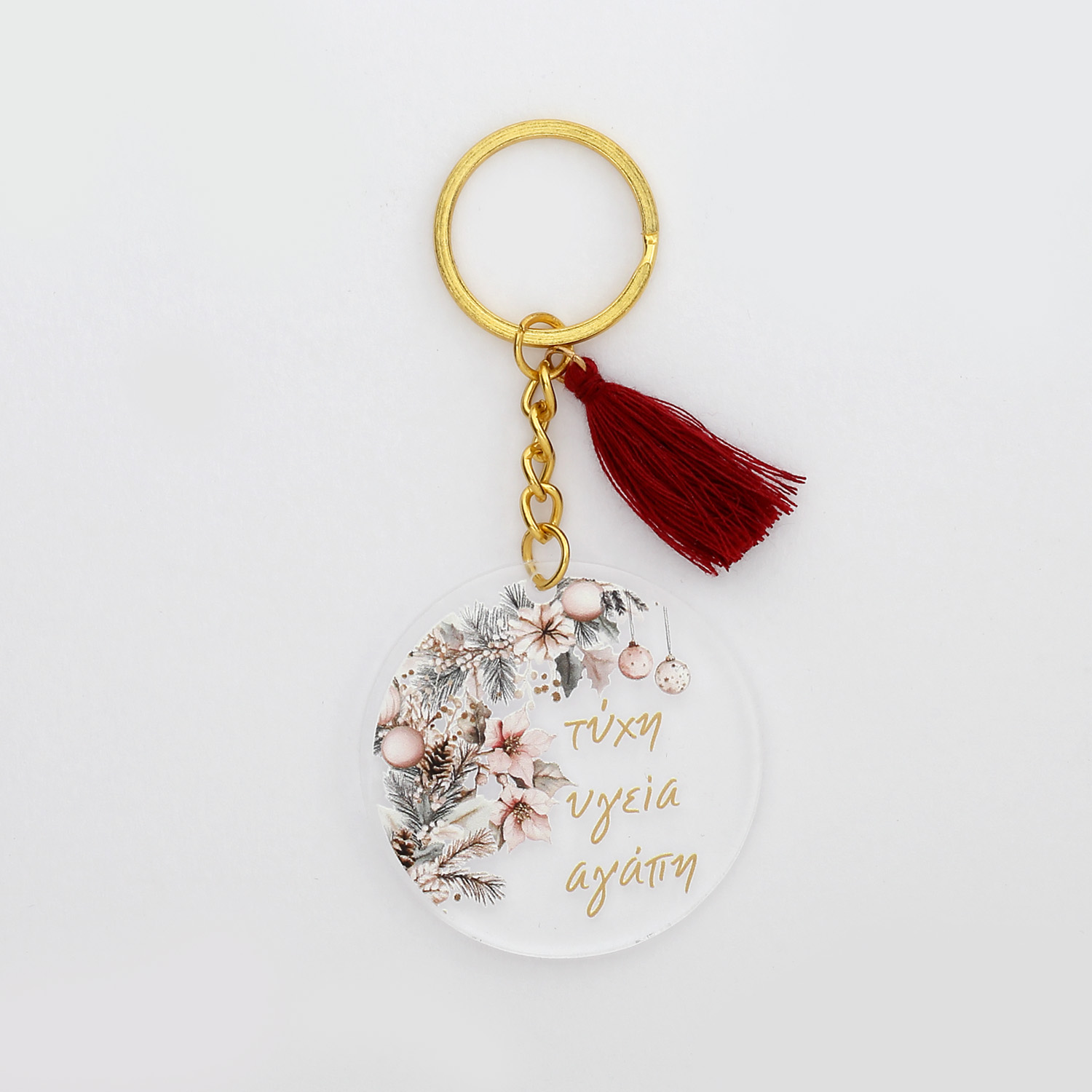 Χριστουγεννιάτικο Μπρελόκ στρογγυλό ροζ λουλούδια ευχές