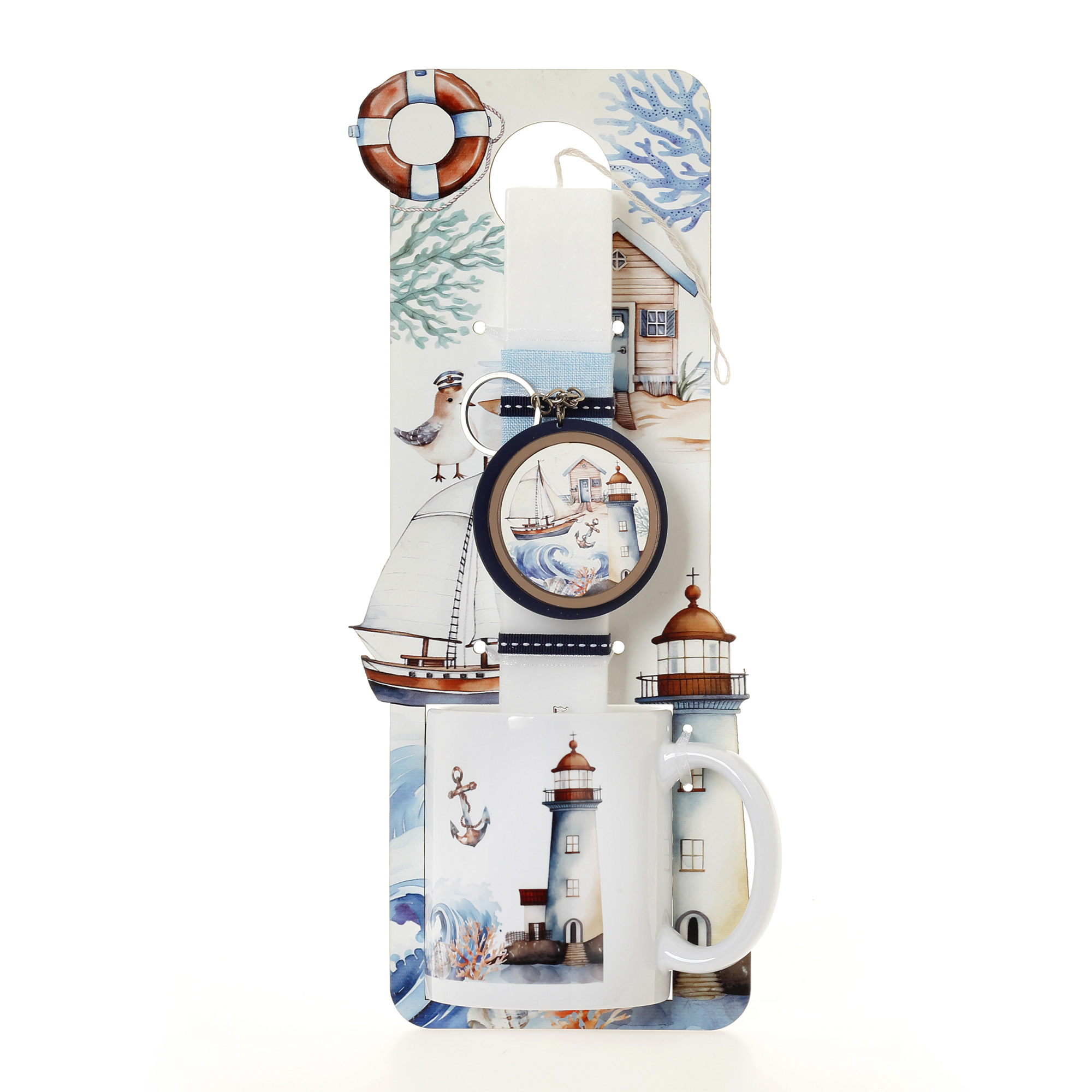Πασχαλινή λαμπάδα με πλάτη και κούπα Ναυτικό φάρος