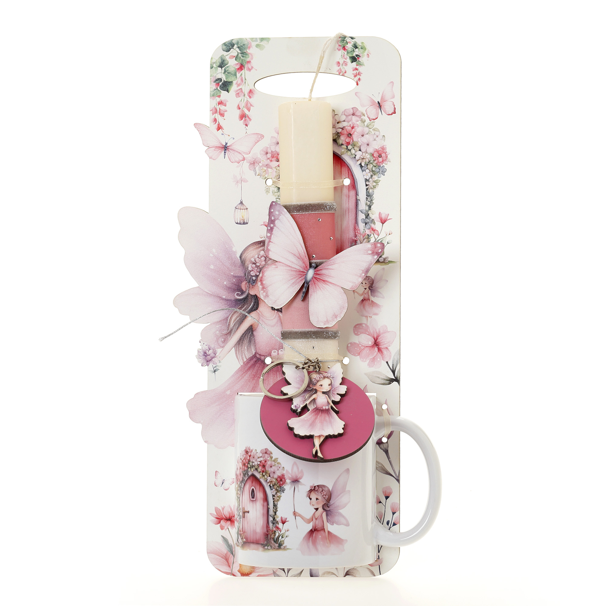 Πασχαλινή λαμπάδα με πλάτη και κούπα Νεράιδα λουλουδένιο σπίτι