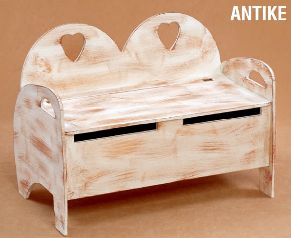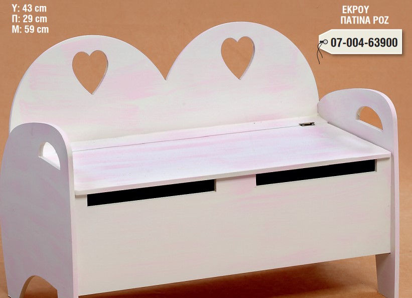 Παγκάκι με πλάτη καρδούλα σε διαφορετικές αποχρώσεις ακόμα και στο καπάκι.