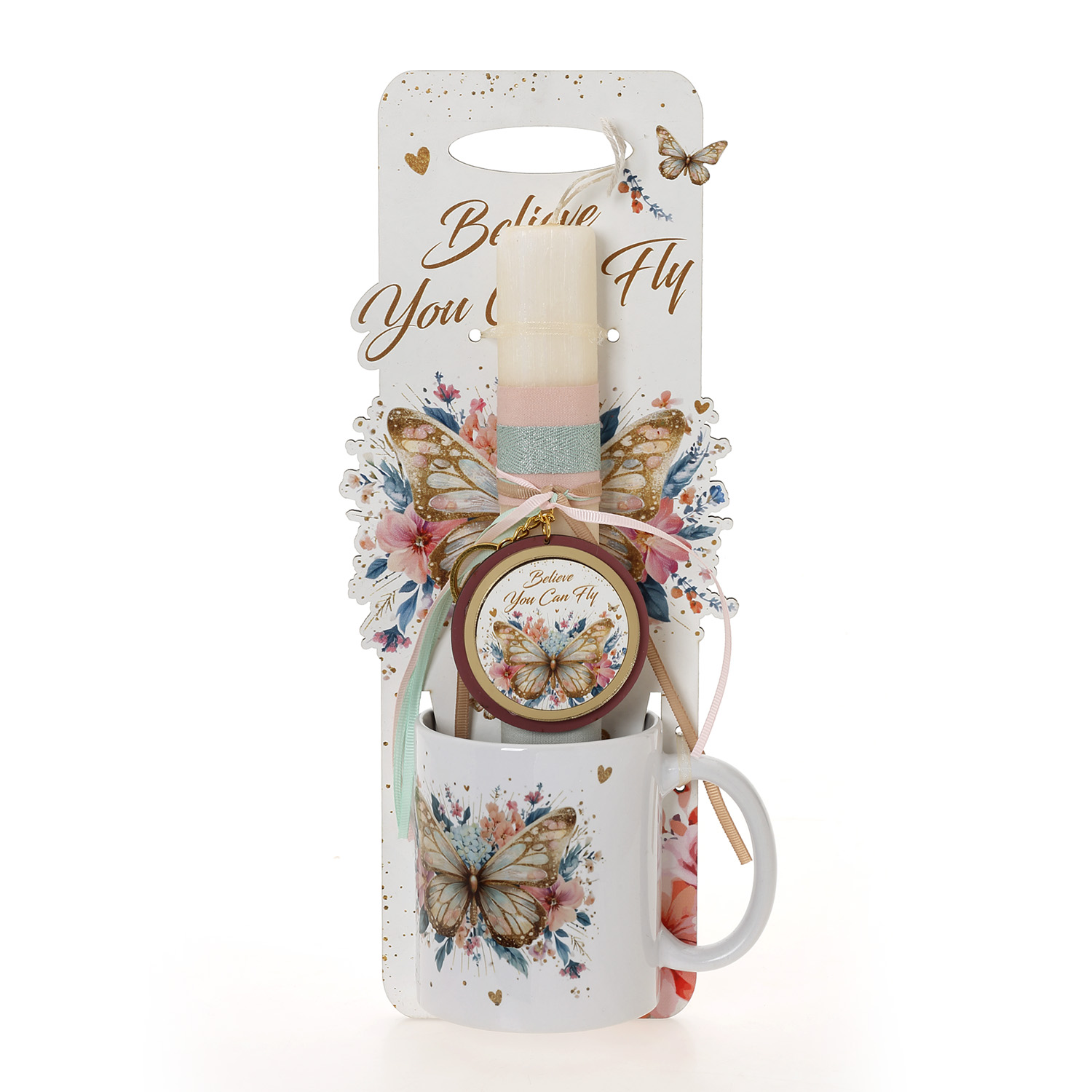Πασχαλινή λαμπάδα με πλάτη και κούπα Πεταλούδα believe you can fly