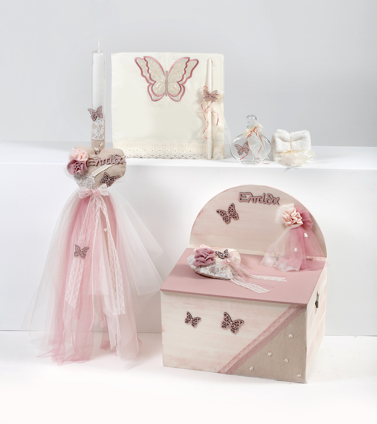 Πακέτο βάπτισης κορίτσι με θέμα Πεταλούδες διάτρητες καρδιά